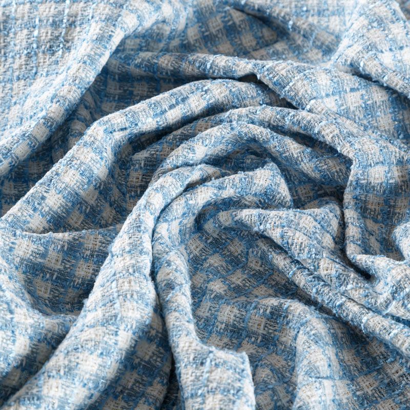 Мягкая, пластичная и объемная ткань, с разреженной и рельефной вывязанной структурой. Буклированный твид в стиле Шанель буквально соткан из различных по толщине и текстуре нитей, образующих рисунок в виде клетки. В плетение добавлена блестящая люрексная нить. Твид идеально подходит для пошива платьев, юбок, жакетов, легких пальто, эффектных бомберов и курток.