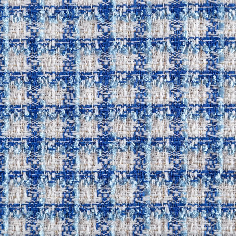 Мягкая, пластичная и объемная ткань, с разреженной и рельефной вывязанной структурой. Буклированный твид в стиле Шанель буквально соткан из различных по толщине и текстуре нитей, образующих рисунок в виде клетки. В плетение добавлена блестящая люрексная нить. Твид идеально подходит для пошива платьев, юбок, жакетов, легких пальто, эффектных бомберов и курток.