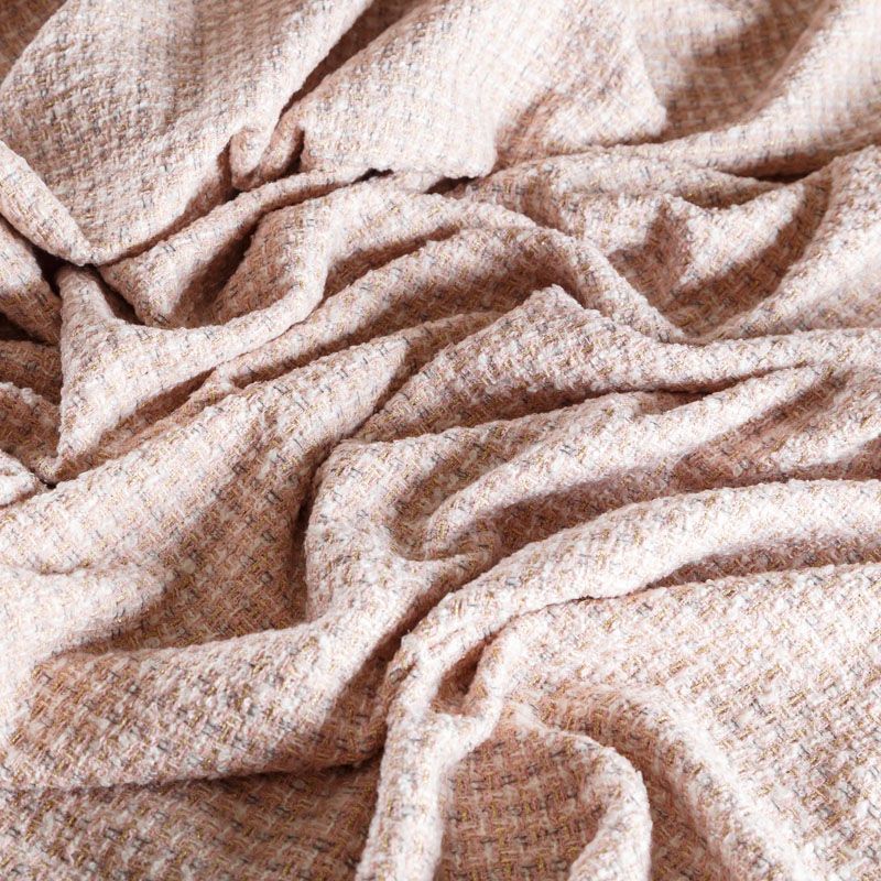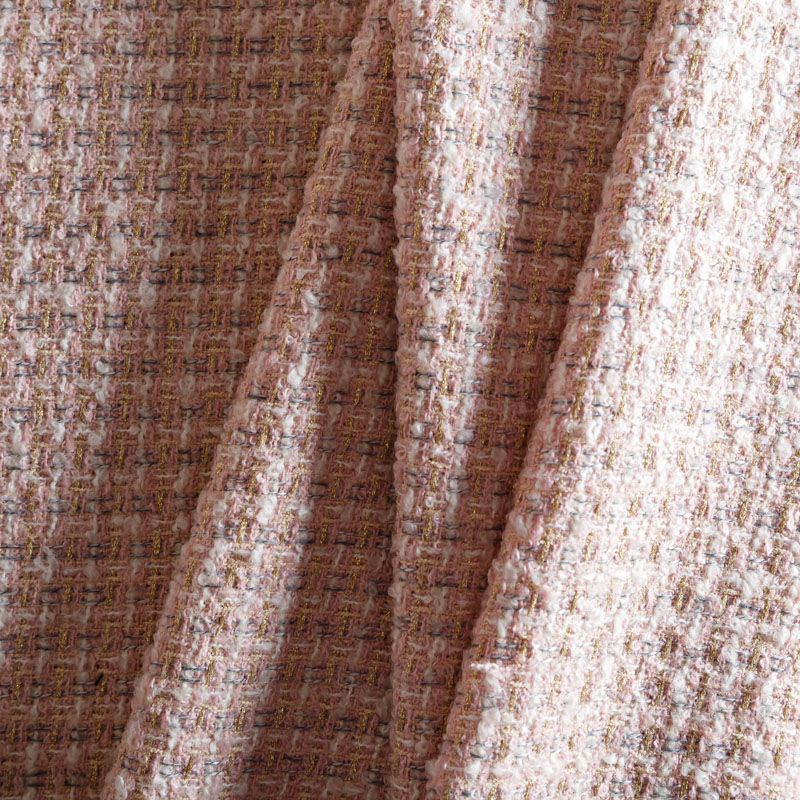 Мягкая, пластичная и объемная ткань, с разреженной и рельефной вывязанной структурой. Буклированный твид в стиле Шанель буквально соткан из различных по толщине и текстуре нитей, образующих рисунок в виде клетки. В плетение добавлена блестящая люрексная нить. Твид идеально подходит для пошива платьев, юбок, жакетов, легких пальто, эффектных бомберов и курток.