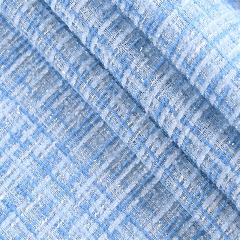 Мягкая, пластичная и объемная ткань, с разреженной и рельефной вывязанной структурой. Буклированный твид в стиле Шанель буквально соткан из различных по толщине и текстуре нитей, образующих рисунок в виде клетки. В плетение добавлена блестящая люрексная нить. Твид идеально подходит для пошива платьев, юбок, жакетов, легких пальто, эффектных бомберов и курток.