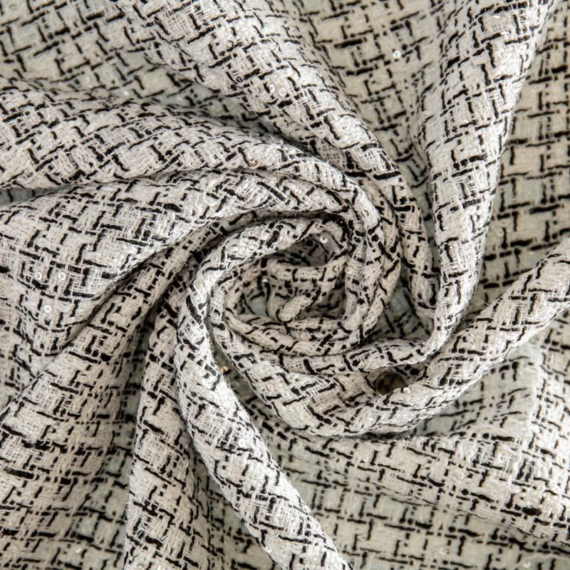 Твид шанель 1120-341-025-0002 молочно-черный с пайетками в Вологде