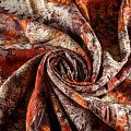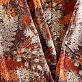 Плотная и мягкая ткань шоколадного оттенка с растительным принтом, имеет саржевое плетение и характерный диагональный рубчик на поверхности. Отлично сохраняет форму, не сильно мнется и не деформируется в процессе эксплуатации. Красиво ложится в складки, поэтому прекрасно подойдет на длинные драпированные юбки и платья, на свободные брюки или шорты, топы.