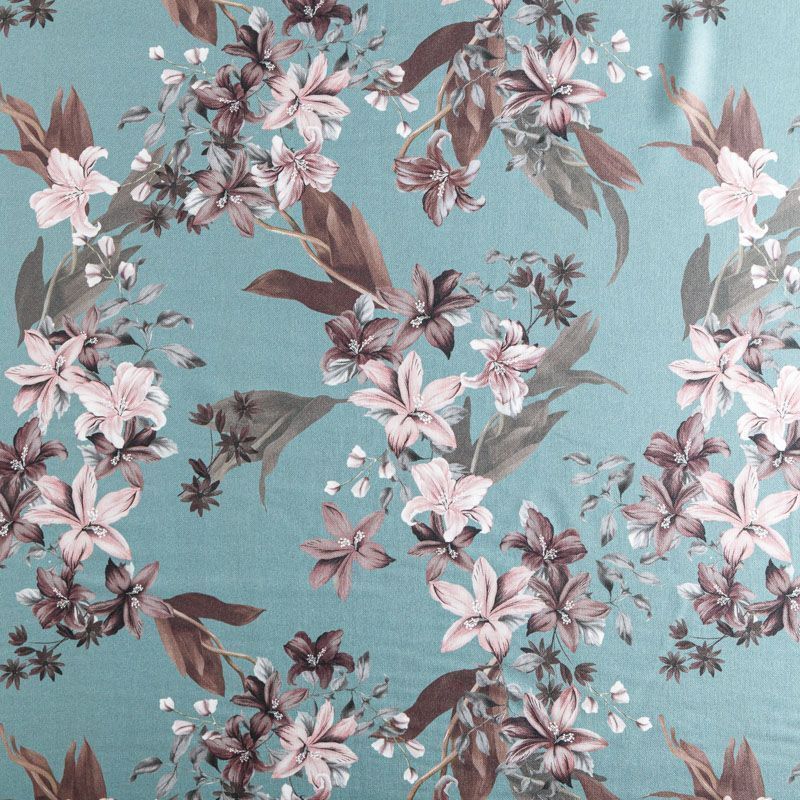 Твил-штапель 069-06479 серо-бирюзовый принтованный