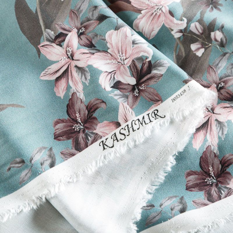 Твил-штапель 069-06479 серо-бирюзовый принтованный в Вологде