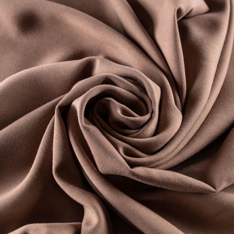 Мягкая ткань средней плотности, имеет саржевое плетение и характерный диагональный рубчик на поверхности. Отлично сохраняет форму, не сильно мнется и не деформируется в процессе эксплуатации.  Красиво ложится в складки, поэтому прекрасно подойдет на длинные драпированные юбки и платья, на свободные брюки или шорты, топы.