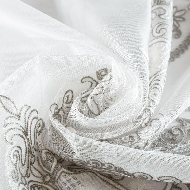 Сетка с вышивкой – это роскошный элемент дизайна, который преобразит любое помещение. Главные плюсы тюли-микросетки – простота, лаконичность, практичность и многофункциональность. Она отлично пропускает воздух, поэтому быстро сохнет после стирки. Прочная, ткань прослужит долго. Она хорошо держит форму, устойчива к разрывам. Выдерживает большое количество стирок. Легкая, фактура ткани практически невесома, поэтому можно не опасаясь крепить ее даже на самый тонкий карниз. Ткань очень послушная в пошиве. Материал прекрасно кроится, поддается проклеиванию.
