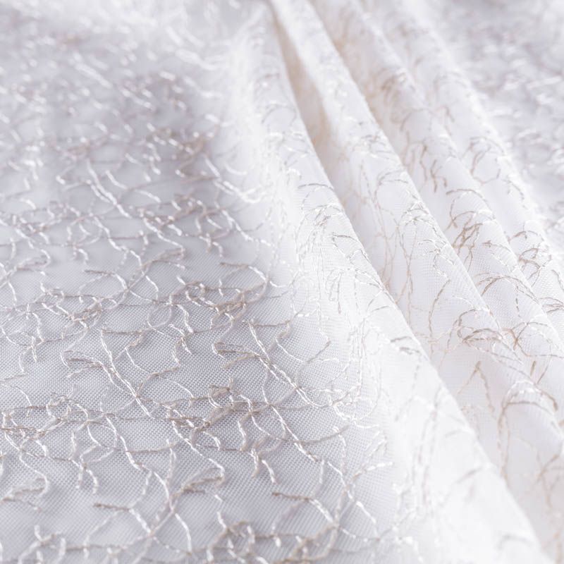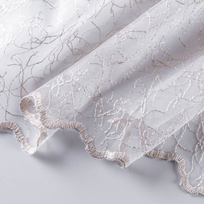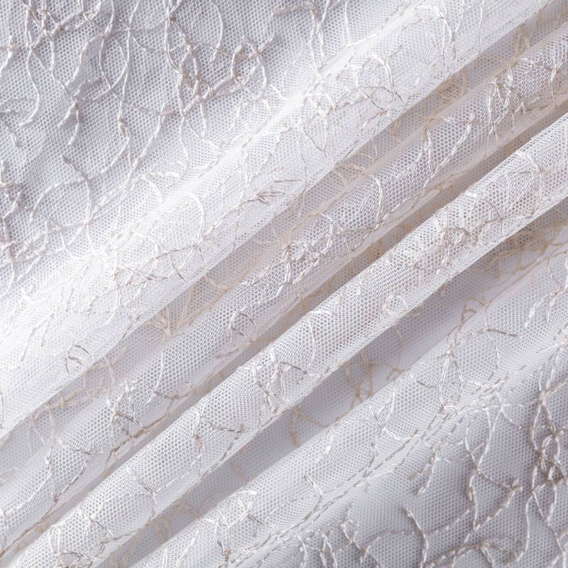 Сетка с вышивкой – это роскошный элемент дизайна, который преобразит любое помещение. Она отлично пропускает воздух, поэтому быстро сохнет после стирки. Прочная, ткань прослужит долго. Выдерживает большое количество стирок. Легкая, фактура ткани практически невесома, поэтому можно не опасаясь крепить ее даже на самый тонкий карниз. Вышивка в виде стилизованной паутинки бежевого цвета расположена по всей высоте ткани, нижний край без утяжелителя, фигурный.