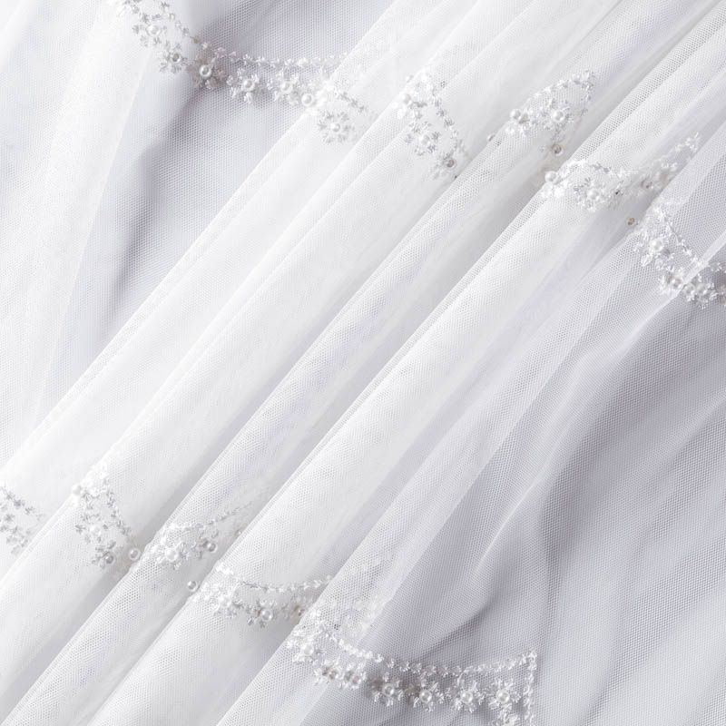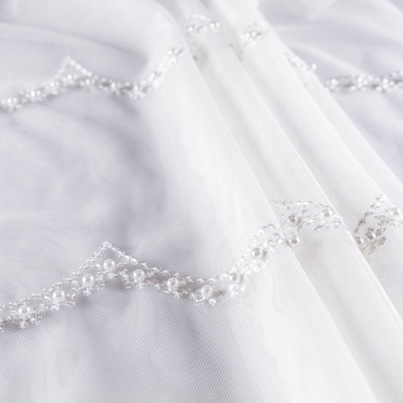 Сетка с вышивкой – это роскошный элемент дизайна, который преобразит любое помещение. Она отлично пропускает воздух, поэтому быстро сохнет после стирки. Прочная, ткань прослужит долго. Выдерживает большое количество стирок. Легкая, фактура ткани практически невесома, поэтому можно не опасаясь крепить ее даже на самый тонкий карниз. Нежная цветочная вышивка с круглыми бусинами в тон тюля расположена ярусами, нижний край украшен вышитым фестоном, без утяжелителя, фигурный.