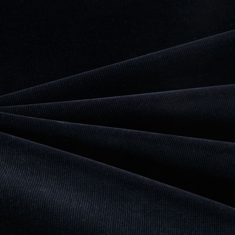 Итальянский костюмно-плательный микровельвет из хлопка в черном цвете. Очень приятный тактильно, поверхность бархатистая в тонкий рубчик, тянется за счет эластана в составе, не просвечивает. Подойдет для пошива костюма, жакета, платья, сарафана, юбки или брюк.
