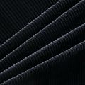 Итальянский хлопковый вельвет костюмно-плательной плотности глубокого черного цвета. Ткань имеет матовую фактурную поверхность в мягкий широкий рубчик, ворс короткий и приятный на ощупь. Хорошо драпируется и держит форму. Прекрасный вариант для пошива костюма, юбки, широких брюк, шорт, комбинезона, жакета, куртки или тренча.