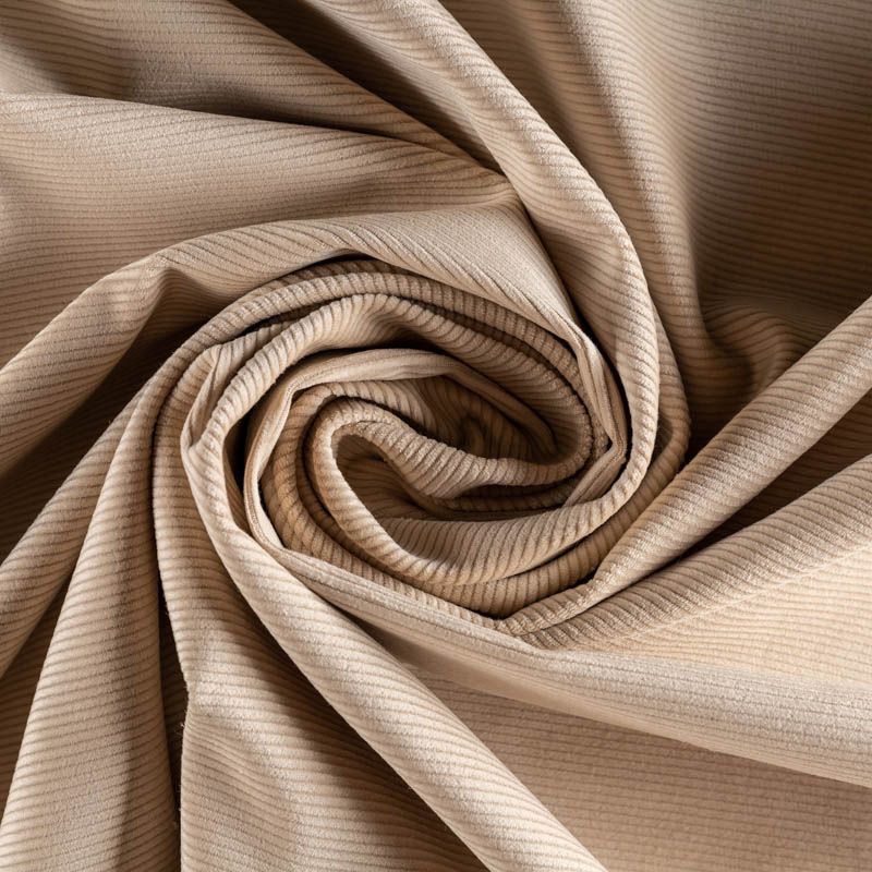 Итальянский костюмно-плательный вельвет из хлопка в благородном песочном оттенке. Очень приятный тактильно, поверхность бархатистая в тонкий рубчик, немного тянется, не просвечивает. Подойдет для пошива костюма, жакета, платья, сарафана, юбки или брюк.