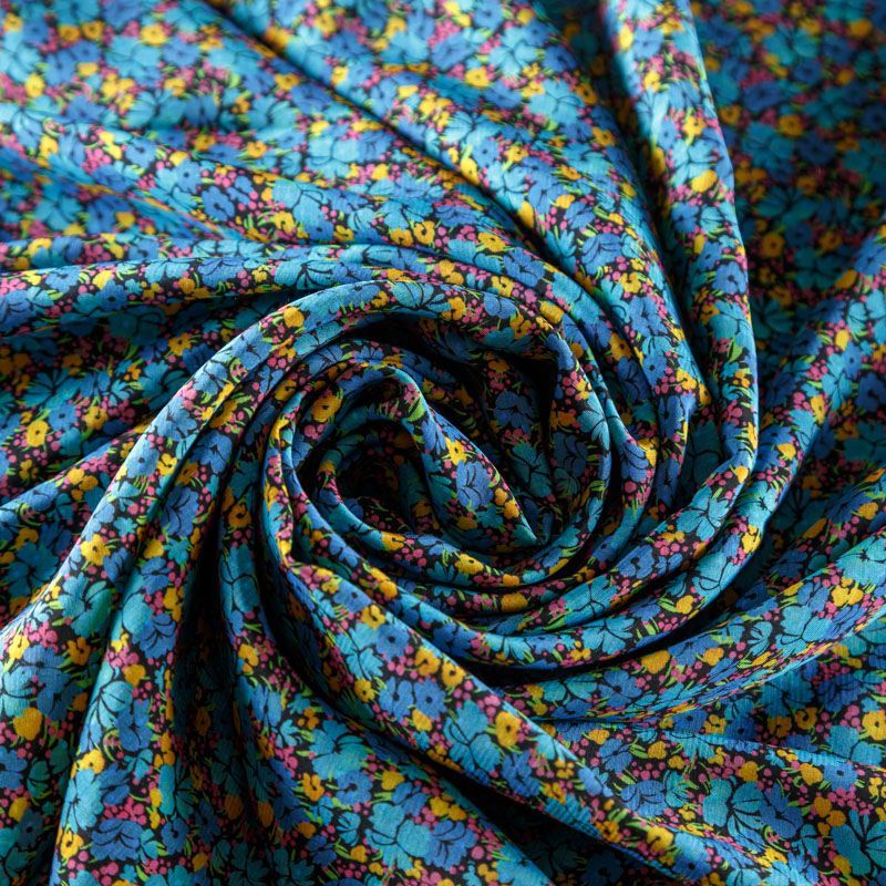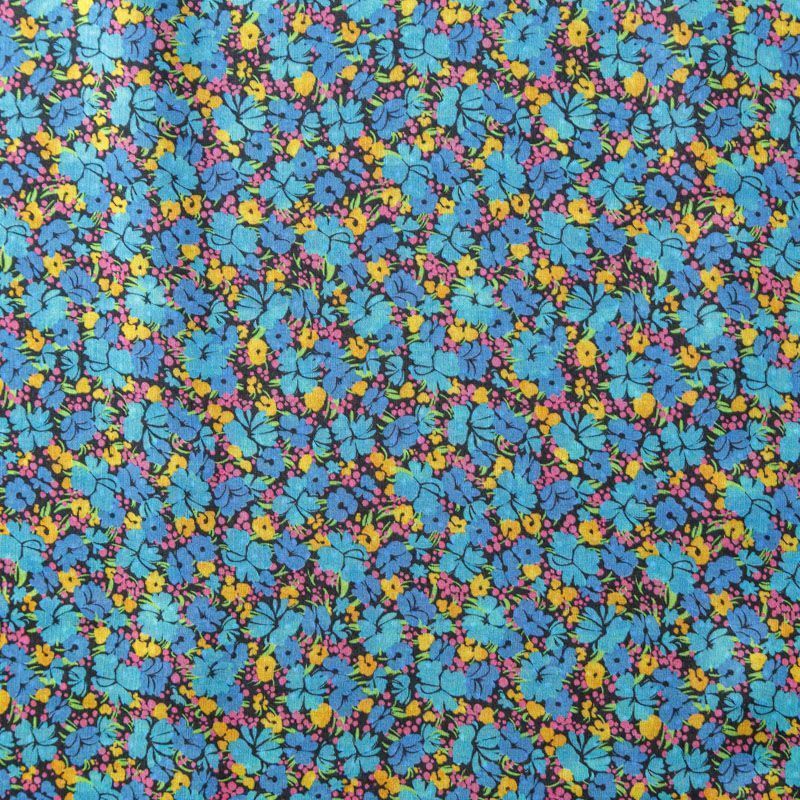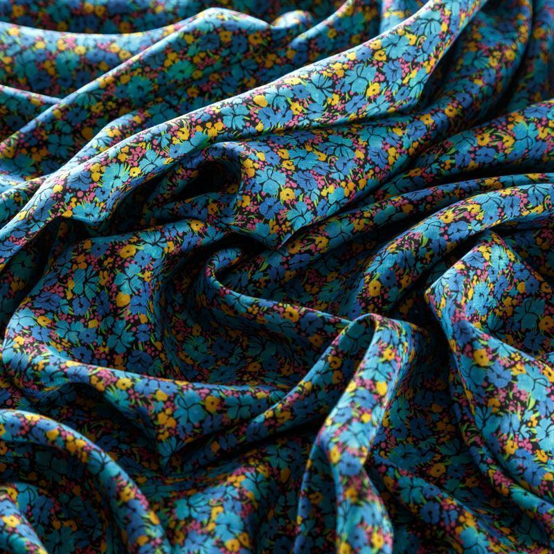 Итальянская плательно-блузочная вискоза с ярким мелкоцветным принтом на черном фоне. Ткань очень пластичная, отлично драпируется и струится, мягкая и приятная на ощупь, не просвечивает. Прекрасно подойдет для пошива платья, рубашки, топа, блузки, юбки, летнего костюма.