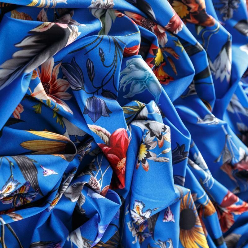 Легкая набивная ткань с цветочным принтом имеет высокую прочность, большую износоустойчивость. Ткань упругая, мягкая и хорошо драпируется, тянется за счет эластана в составе, образует струящиеся складки. Идеально подойдет для пошива блуз, юбок, платьев, сарафанов.