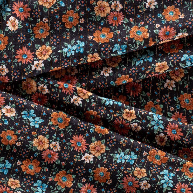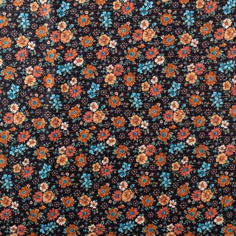 Итальянская плательно-блузочная вискоза с ярким цветочным принтом на черном фоне декорирована тонкой люрексовой полоской. Ткань очень пластичная, отлично драпируется и струится, мягкая и приятная на ощупь, не просвечивает. Прекрасно подойдет для пошива платья, топа, блузки, юбки.