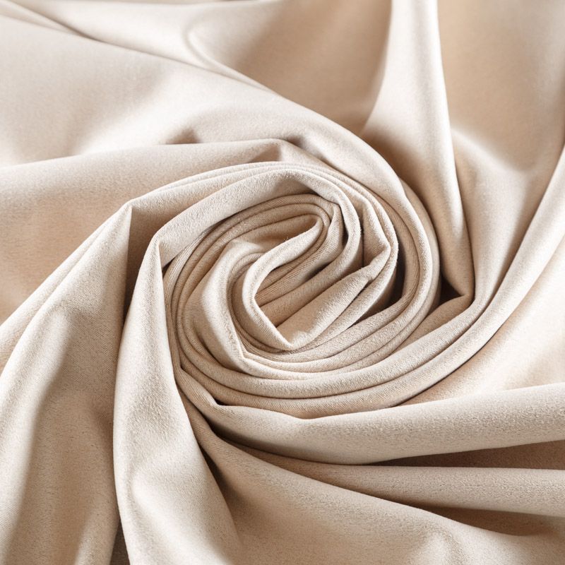 Плотное полотно с мягкой поверхностью, имитирующее замшевую фактуру с матовым ультракоротким ворсом. Комфортный материал достаточно пластичен, тянется за счет эластана в составе, отлично держит форму. Одежда из замши очень уютная и приятная на ощупь, хорошо облегает фигуру. Прекрасно подойдет для пошива платья, брюк, юбок, костюмов, тренчей и жакетов.