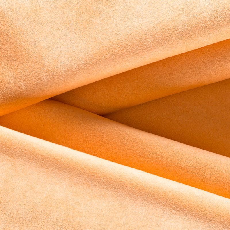 Плотное полотно с поверхностью, имитирующей замшевую фактуру с матовым ультракоротким ворсом. С изнаночной стороны ткань имеет такую же поверхность. Комфортный материал достаточно прочный, отлично держит форму. Прекрасно подойдет для пошива платья-футляра, юбок, тренчей и жакетов, а также для обивки мебели и других предметов интерьера.