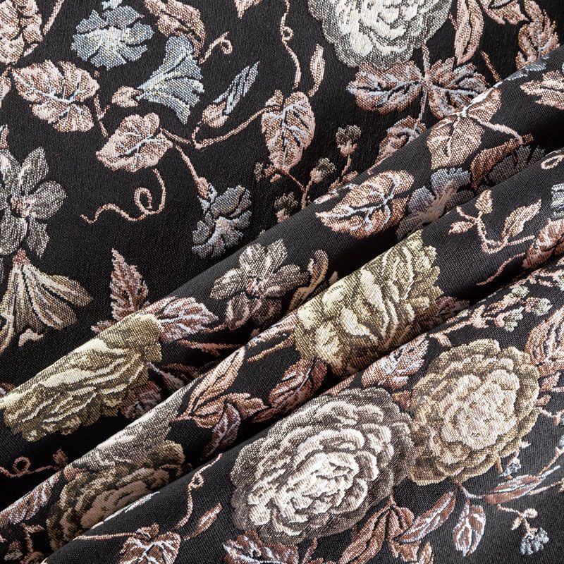 Итальянский оригинальный жаккард-гобелен с крупными цветами в пастельных оттенках на черном фоне. Ткань плотная, отлично держит форму, очень прочная, долговечная. Поверхность с красивой фактурой, образованной методом жаккардового плетения. Подойдет для создания эксклюзивных пальто, жакетов, теплых костюмов, а также для сумок и других аксессуаров.