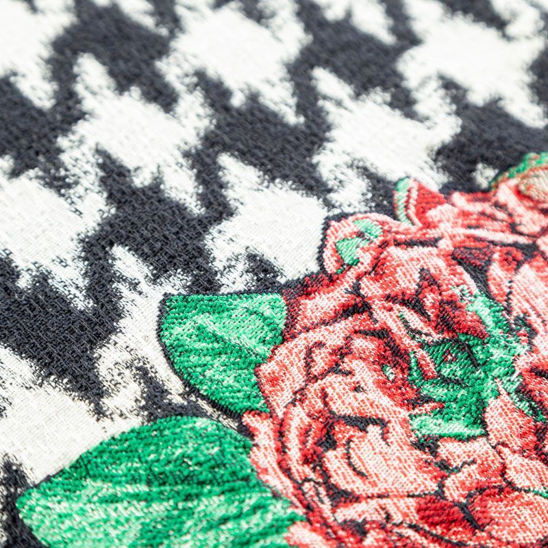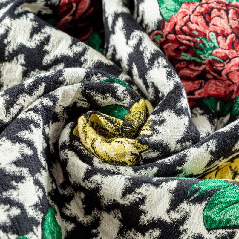 Итальянский хлопковый жаккард в крупную "гусиную лапку", дополненную акцентными разноцветными пионами. Ткань очень стильная, сложно-фактурная, рельефная, тянется за счет эластана в составе. Подходит для пошива костюмов, юбок, платьев, лёгких летних пальто. ВНИМАНИЕ! ОСТАТОК 1,1 и 0,7 м.