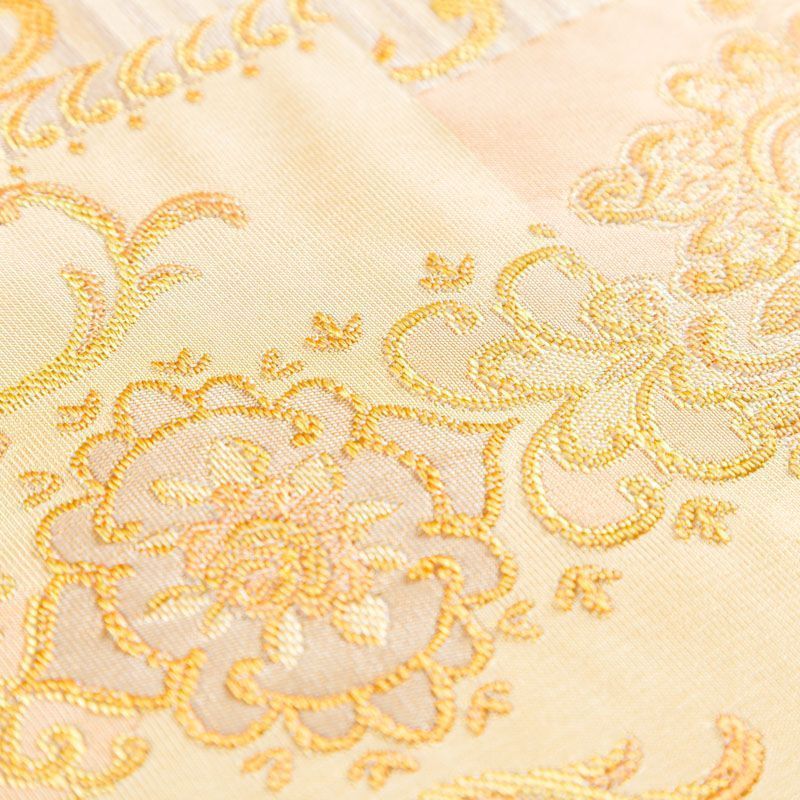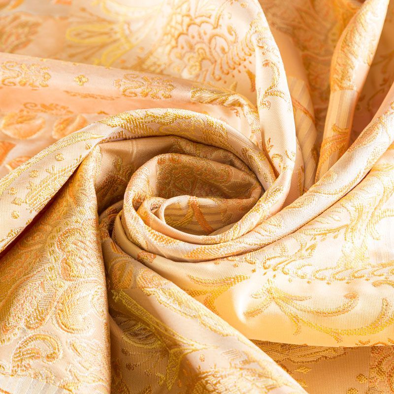 Итальянский жаккард с красивым сложным орнаментом, имитирующим вышивку, персикового оттенка. Ткань плотная, поверхность со сдержанным блеском объемная и текстурная, хорошо драпируется и держит форму, не тянется, не просвечивает. Подойдет для пошива нарядных вечерних костюмов, жакетов, корсетов, платьев-футляров в стиле Dior, легких пальто, бомберов, юбок или шорт.