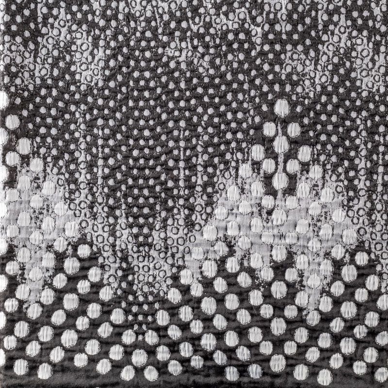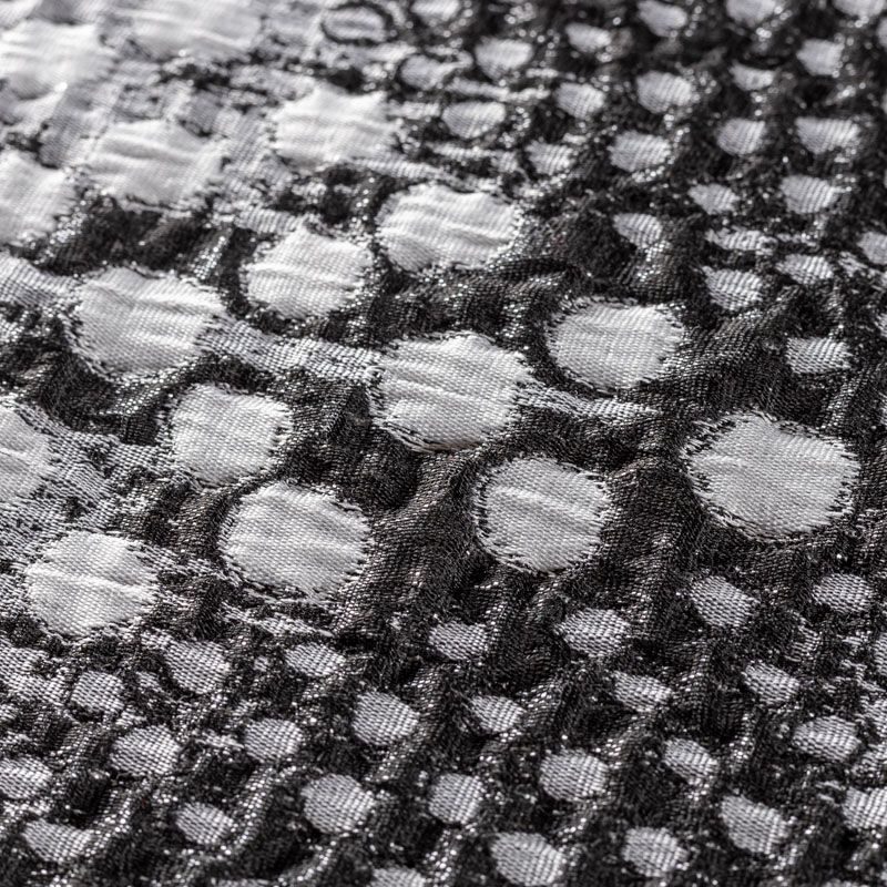 Итальянский купонный полушерстяной жаккард черного цвета с пестрым белым узором, который создает оригинальный объемный эффект. Фактура ткани напоминает тканое полотно, ткань плотная, практичная и прочная. Она хорошо держит форму. Рисунок расположен от кромки до кромки и имеет довольно большой раппорт, поэтому ткань набирается на изделие объемом кратно купону. Отлично подойдёт для пошива утепленного или легкого пальто, жилета, жакета, бомбера, юбки.