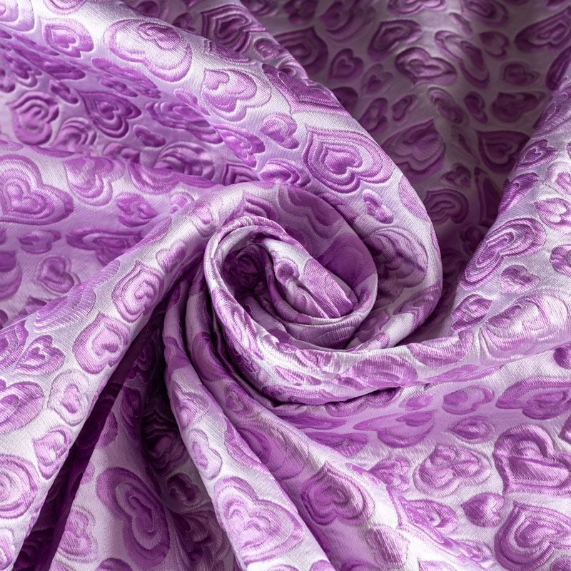 Итальянский жаккард с нежным и романтичным 3D дизайном из маленьких сердечек в сочетании холодного розового и сиреневого оттенков - очень стильный и оригинальный. Ткань легкая, поверхность со сдержанным блеском объемная и фактурная, хорошо драпируется, не тянется и не просвечивает. Подойдет для пошива нарядных вечерних костюмов, платьев-футляров или стиле Dior, жакетов, топов, летних пальто, юбок или шорт.