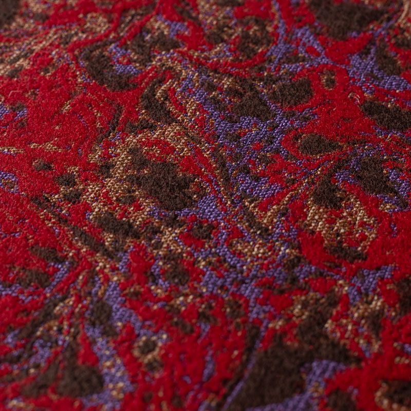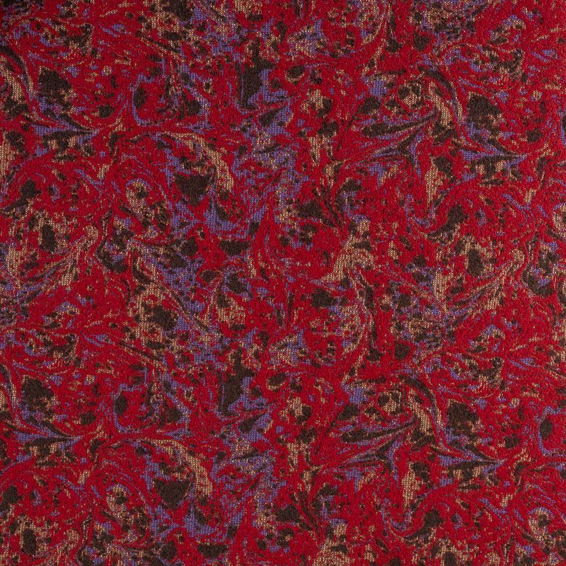 Итальянский пальтовый шерстяной жаккард красного цвета с пестрым узором, который создает оригинальный объемный эффект. Фактура ткани напоминает тканое полотно, ткань плотная, практичная и прочная. Она хорошо держит форму, небольшое количество эластана повышает ее растяжимость. Отлично подойдёт для пошива утепленного или легкого пальто, жилета, жакета, юбки.